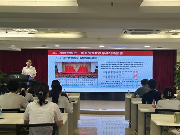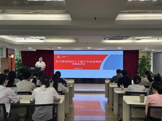 8月27日,星空在线平台(中国)官网团委书记梁晨在广德大厦15楼会议室为各团组织书记、委员,本部及纺出公司团员青年,2024年新入职管培生共47人作学习贯彻党的二十届三中全会精神专题宣讲。在宣讲过程中,梁晨通过鲜活的语言、生动的案例,从深刻把握进一步全面深化改革的重要性和必要性,深刻认识进一步全面深化改革的指导思想和总目标、重大原则、重要部署,认真落实进一步全面深化改革的实践要求等方面深入浅出地对全会精神进行了系统阐述和解读。