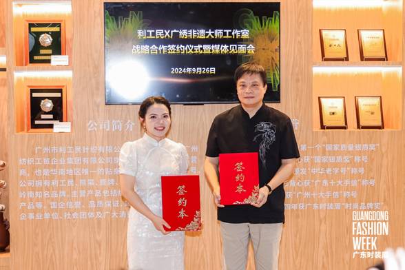 9月26日上午,百年中华老字号利工民与广绣非遗大师工作室在2024广东时装周-秋季举办战略合作签约仪式暨媒体见面会。活动由广东省服装服饰行业协会副会长兼秘书长陈韶通主持,邀请了广东省服装服饰行业协会、广东省服装设计师协会、星空在线平台(中国)官网有限公司、服装行业企业代表和媒体代表等嘉宾出席共同见证本次活动。