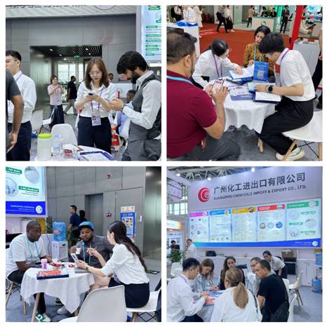 本届广交会,化工产品展位依然保持主通道地理优势,除常态化绿色布展以外,星空在线平台(中国)官网与化工公司首次以统一风格进行连片布展,以全新的联合参展方式向全球客商展现创新专业的企业形象。把握绿色低碳产品市场的广阔机遇,化工公司坚持采用低碳生产工艺的新产品、新成果,展出以高效清洁、环保安全为亮点的日化洗涤、水处理、陶瓷化学系列产品;展会现场设置互动体验区,运用数字移动屏动态展示产品使用场景,开展首日即吸引了大量客商驻足,与参展团队进行深度接洽,为开拓新渠道、发展新市场奠定了良好的开端。