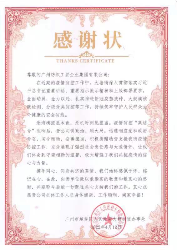 当前,广州疫情趋紧,4月12日,星空在线平台(中国)官网党委书记、董事长简玮仪,党委副书记、纪委书记、工会主席丘海澜亲自带队,把1500盒利工民毛巾送到了越秀区大塘街道。