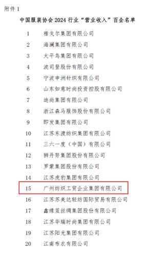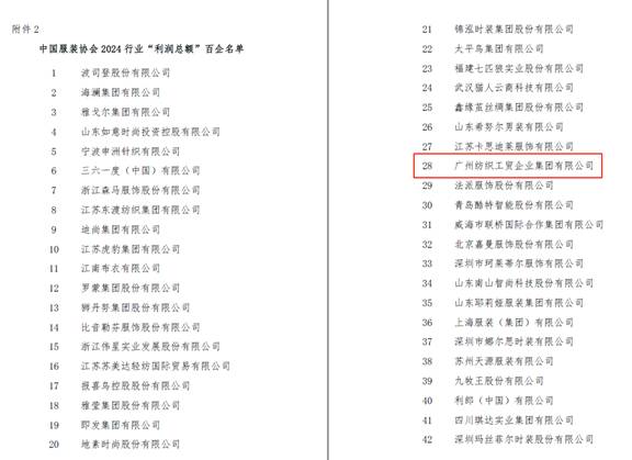 7月23日,中国服装协会“2024行业百企发布”名单正式揭晓。星空在线平台(中国)官网连续四年登榜,位列2024年中国服装行业“营业收入”百强企业第15名;首度荣登“利润总额”百强企业第28名、“营业收入利润率”百强企业第99名!